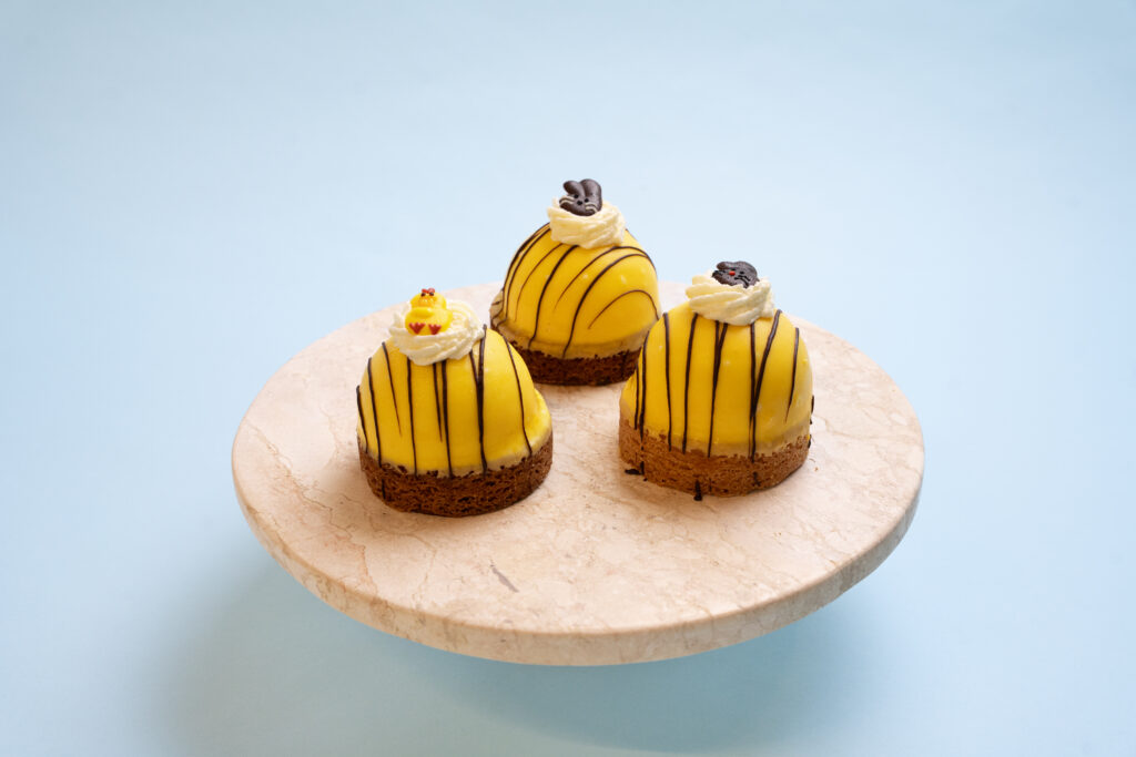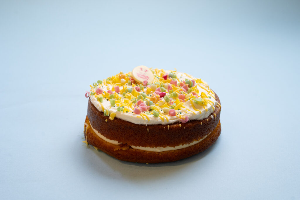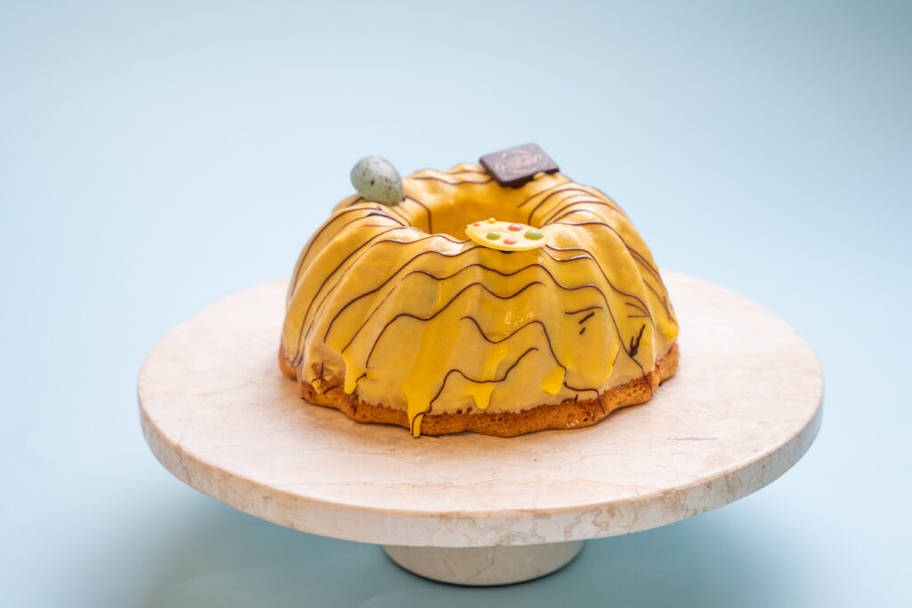 Dudoks zachte Yellow Velvet cake met een fluweelachtige structuur en een subtiel frisse smaak. Afgewerkt met een romige advocaattopping die perfect past bij de paasdagen.